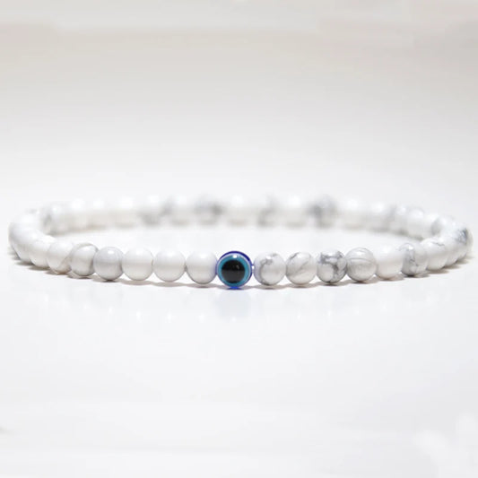 Natural 4mm Stone Beads Evil Eye Bracelet