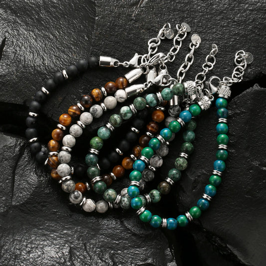 Stone for Men Natural-Stone Shiny Black Bracelet