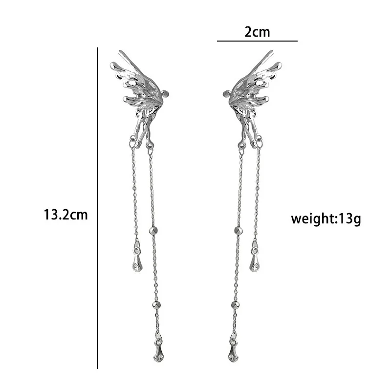 1Pair Earrings for Women Elegant Elf Butterfly Long Tassel Clip Wed Bridal Retro Kpop No Piercing Earbone Ear Cuff Jewelry Gift