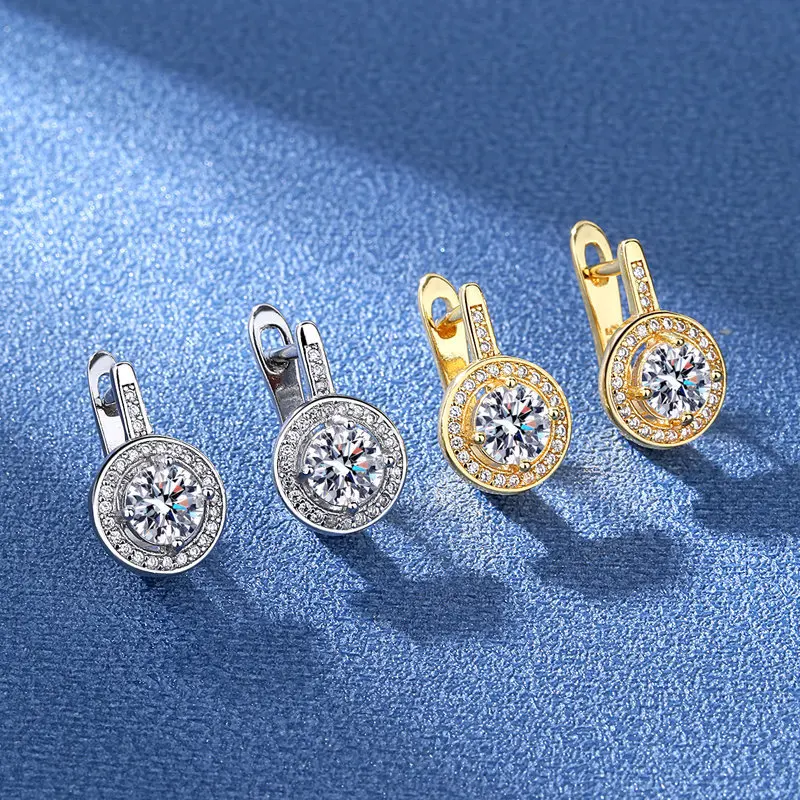 925 Sterling Silver Round Crystal Stud Earrings For Women Girls Wedding Engagement Fashion Jewelry Wholesale