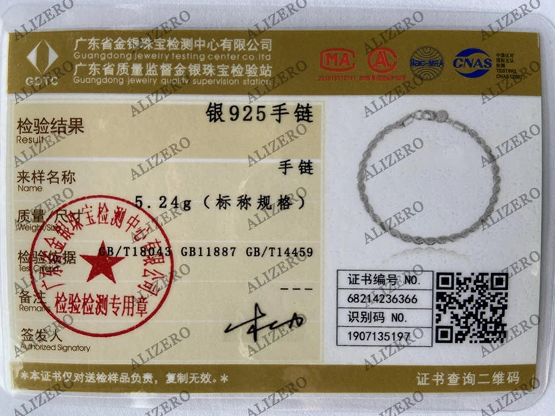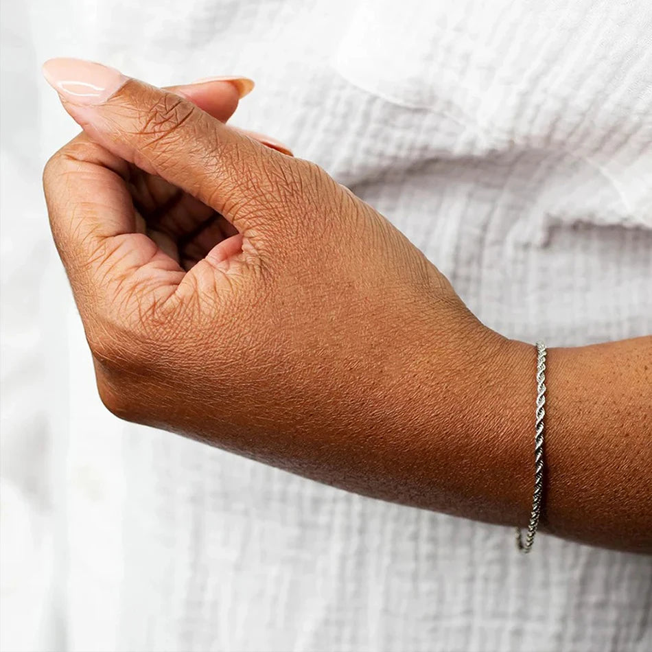 ALIZERO 925 Sterling Silver Unisex 4mm Rope Chain Bracelets for Men Women Twisted Links Chain Bracelet Simple Classic Jewelry