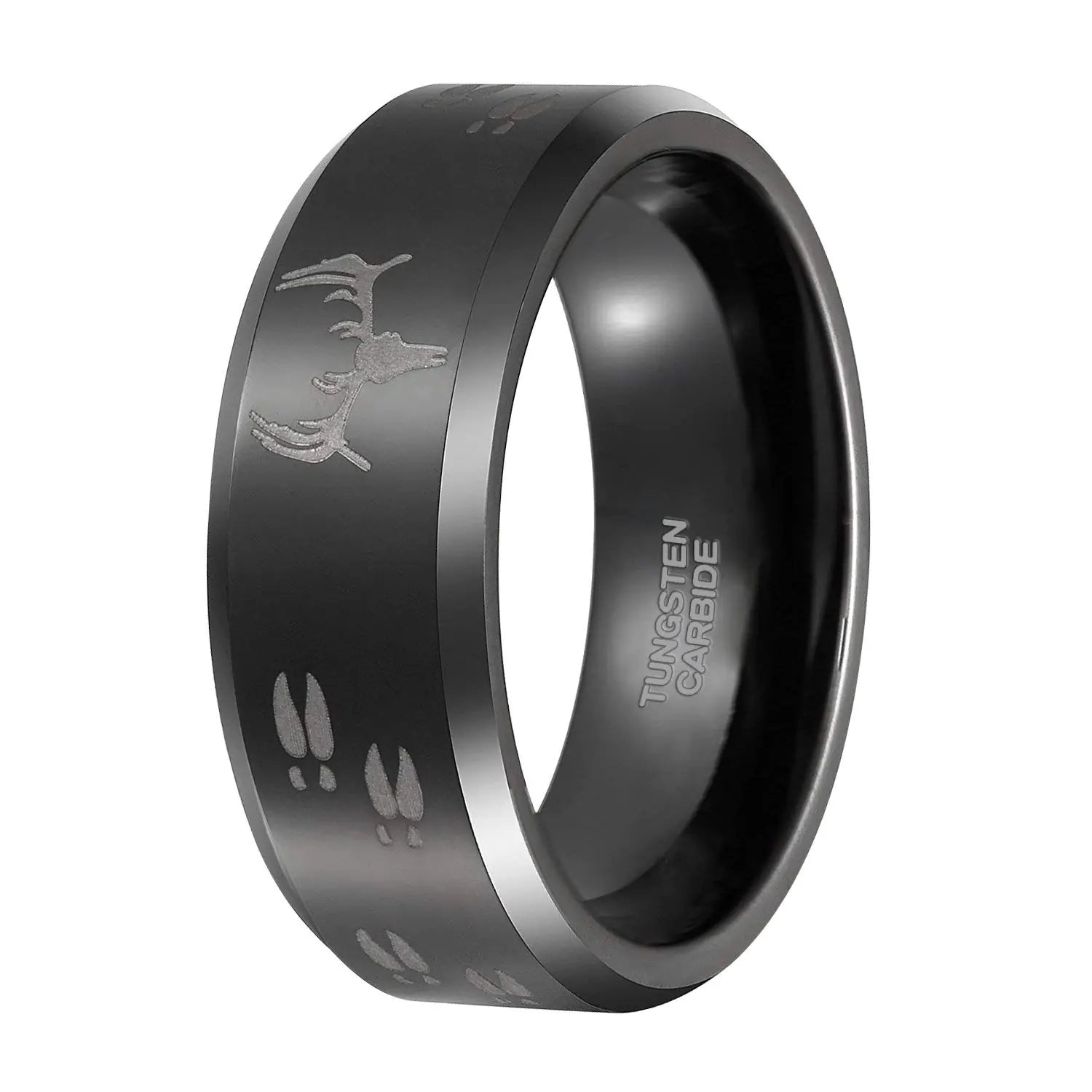 [Design: 8mm wedding rings for men women. black color deer antler engraved beveled edges dome comfortable Pros of Tungsten Ring: Scratch resistant Cobalt free Hypoallergenic Anti-fading Comfort fit Our Advantage: We have our designers and factory ensuring to provide customers with first-class quality and craftsmanship "Occasion: This men wedding ring is an awesome idea for Wedding Engagement Promise Anniversary Valentines day Thanksgiving Christmas New year Birthday" "After-Sale Service: If you have any other questions please dont hesitate to contact us. Well be here to help you within 24 hours"]