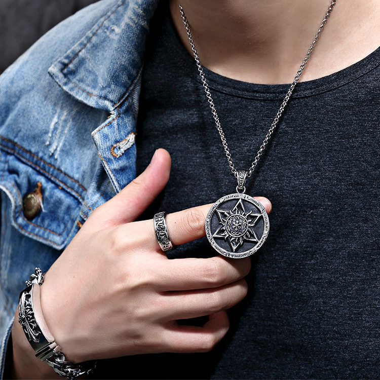Bold Men's Titanium Steel Star Necklace with Pendant
