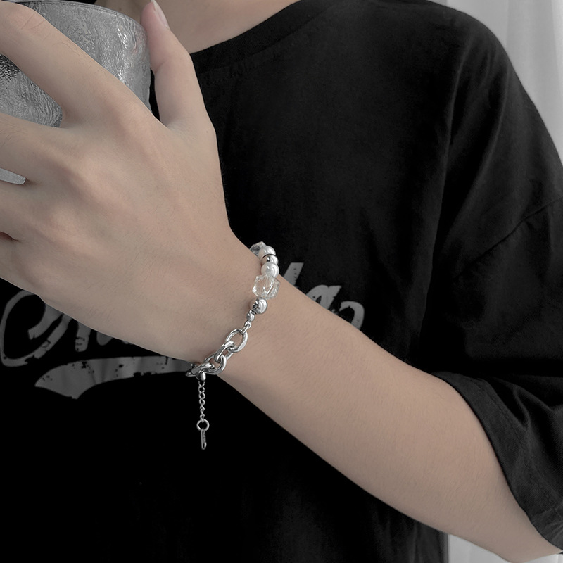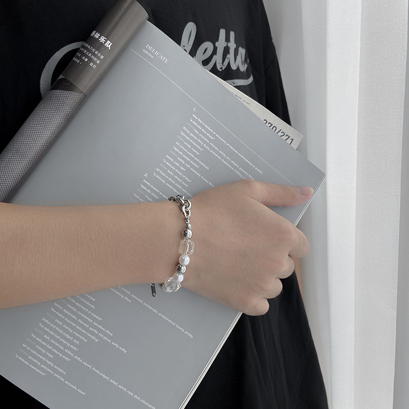 Elevate your style with this Cool Design Trend Men's Bracelet, a perfect blend of sophistication and modern flair. Crafted from titanium steel, this bracelet is not only durable but also features a stunning pearl inlay, adding a touch of elegance to your look.