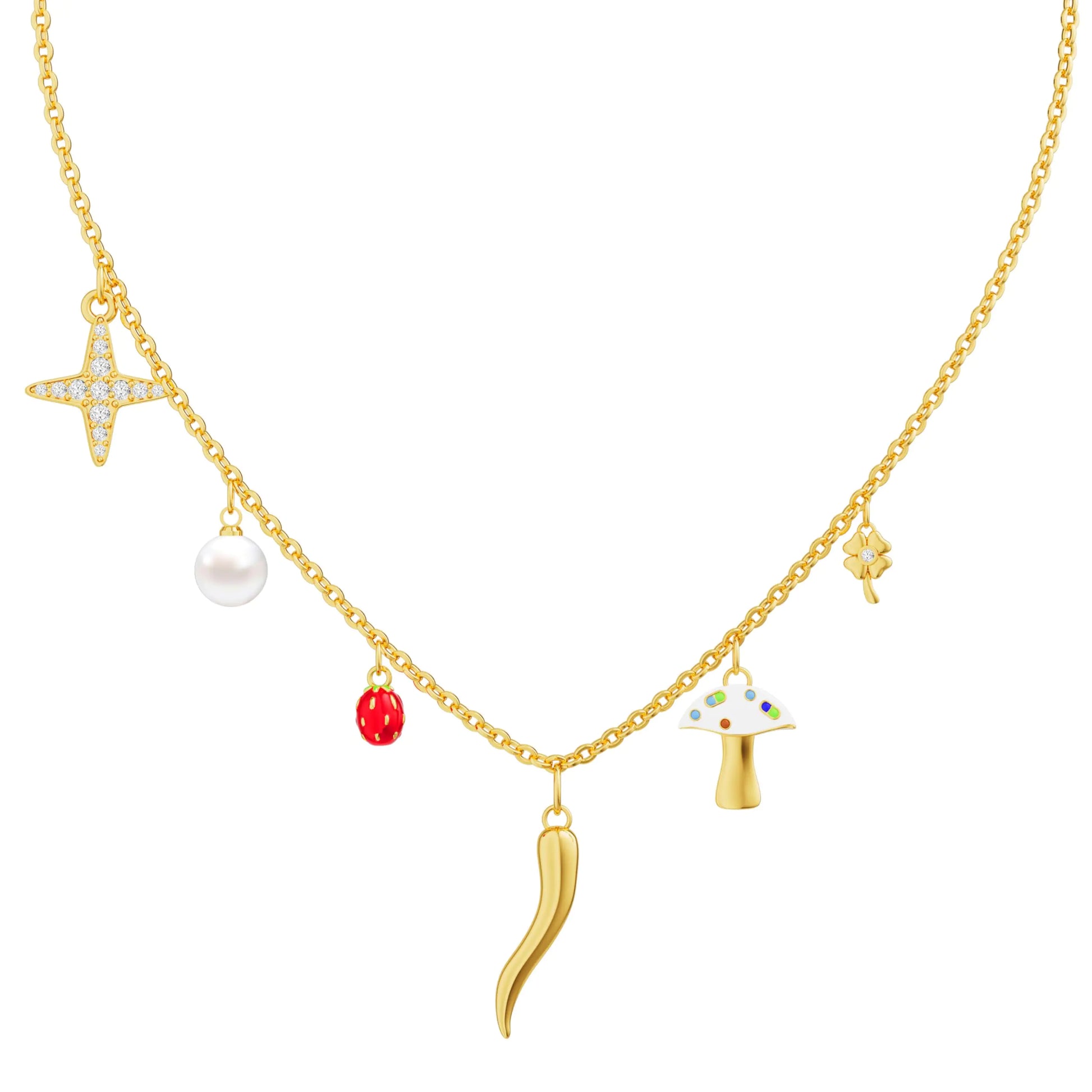 [✿[High-quality material]: High-quality copper hypoallergenic nickel-free will not cause allergic reactions and will not damage the skin. 14K gold-plated no fading showing noble temperament while maintaining lasting luster ✿[Design concept]: Our Dainty charm necklace is equipped pepper/pearl/star/strawberry/mushroom/clover pendant and you can choose different styles according to your personal preferences to show a unique style ✿[High adaptability] Whether it is classic elegance or fashion avant-garde each design is designed to highlight your personality and taste ✿[Occasion] Suitable for any festival Christmas birthday gifts friendship gifts wedding anniversary gifts. Whether you wear it at home for daily wear shopping dating vacation or party this charm necklace will bring you many compliments ✿[Perfect match] You can match your clothes in daily life suitable for any style this charm necklace will make your appearance stand out; Comfortable to wear it is easy to become the focus of attention]