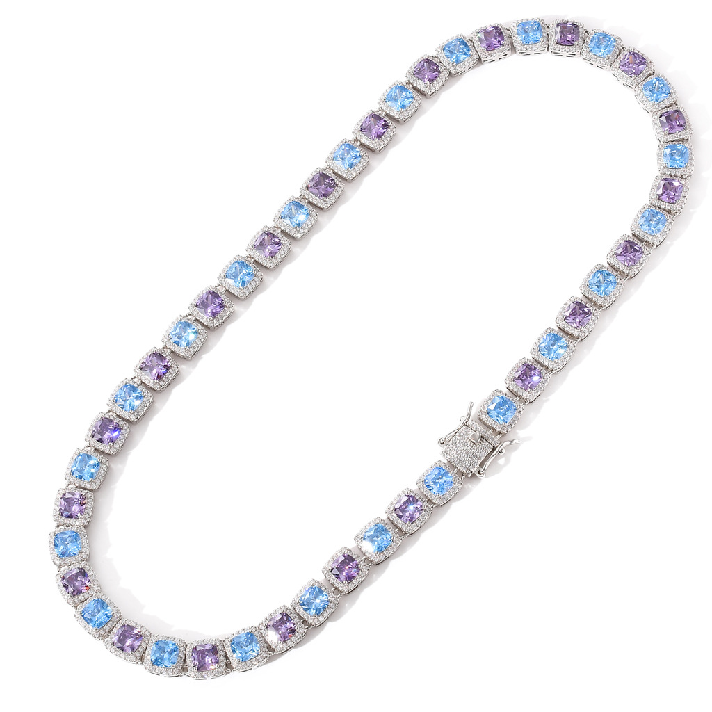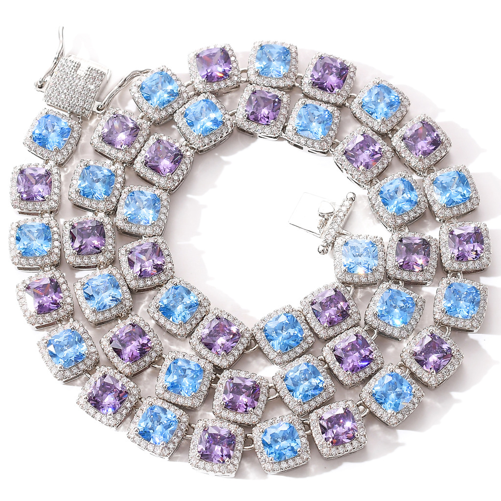 Elevate your style with our stunning 10mm square color blue purple zircon necklace. This eye-catching piece is crafted from high-quality copper micro-inlaid zircon and finished with real gold plating, ensuring you shine bright on any occasion.