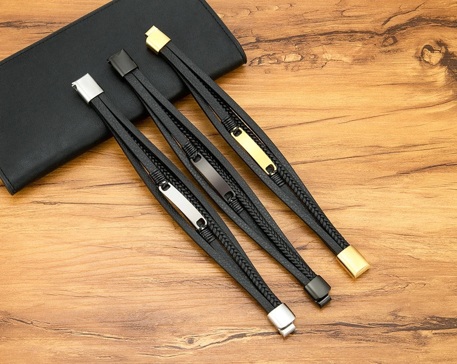 Crafted for the modern man, this multi-layer braided leather bracelet combines rugged elegance with durable stainless steel accents. Its intricate design offers a sophisticated yet casual look, perfect for everyday wear or special occasions. The wrap style ensures a comfortable fit while adding a distinctive edge to your wristwear collection. Durable materials provide lasting quality, making it a versatile accessory that balances style and resilience.
