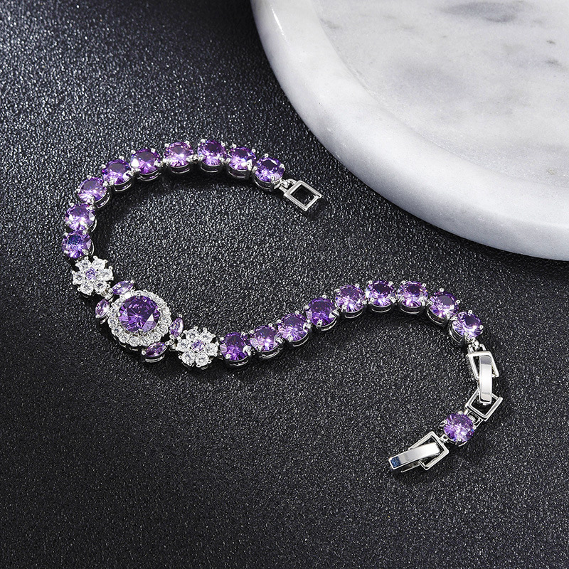 Discover the elegance of our New Flower Purple Light Luxury Women's Bracelet, a stunning accessory that perfectly blends affordable luxury with a touch of nature. This beautiful bracelet features an intricate flower design adorned with shimmering zircon stones, making it a captivating addition to any outfit.