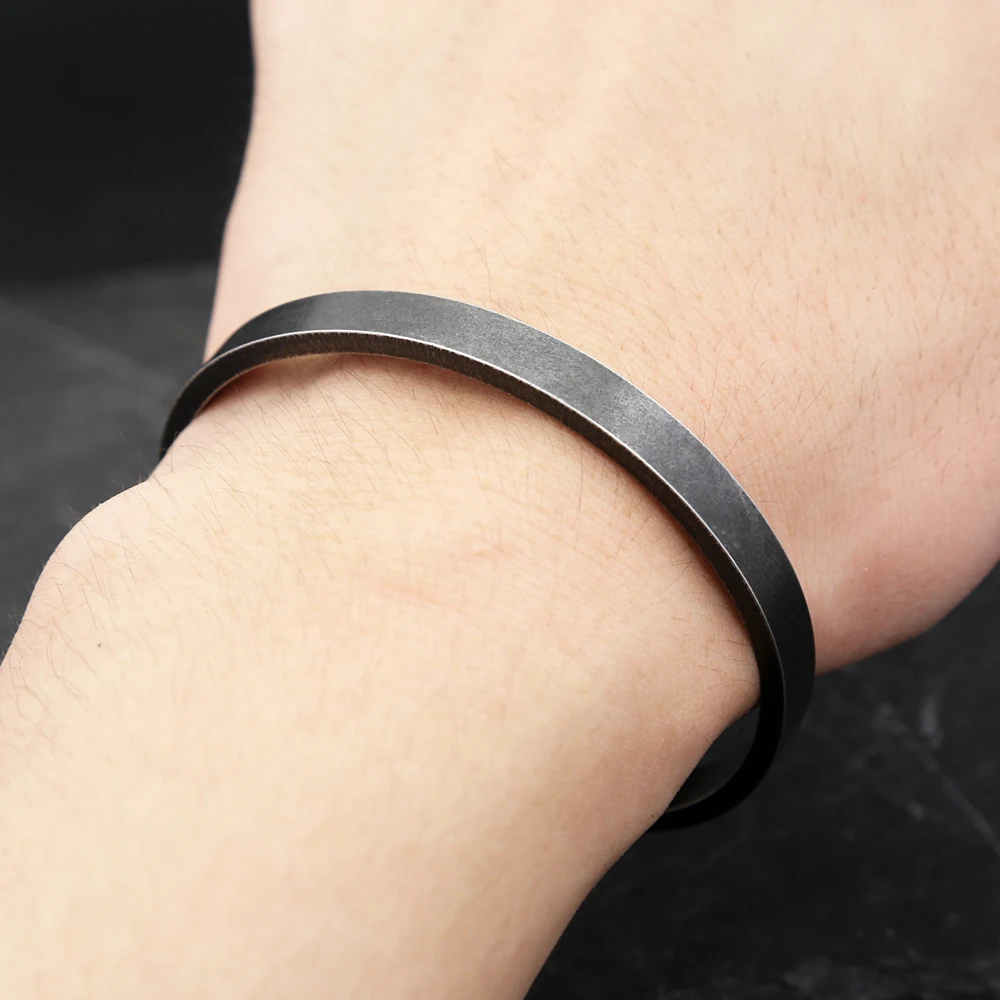 Vintage Black Simple Bracelet For Men Women 316L Stainless Steel Fashion Opening Cuff Bangles Biker Jewelry Gifts Dropshipping