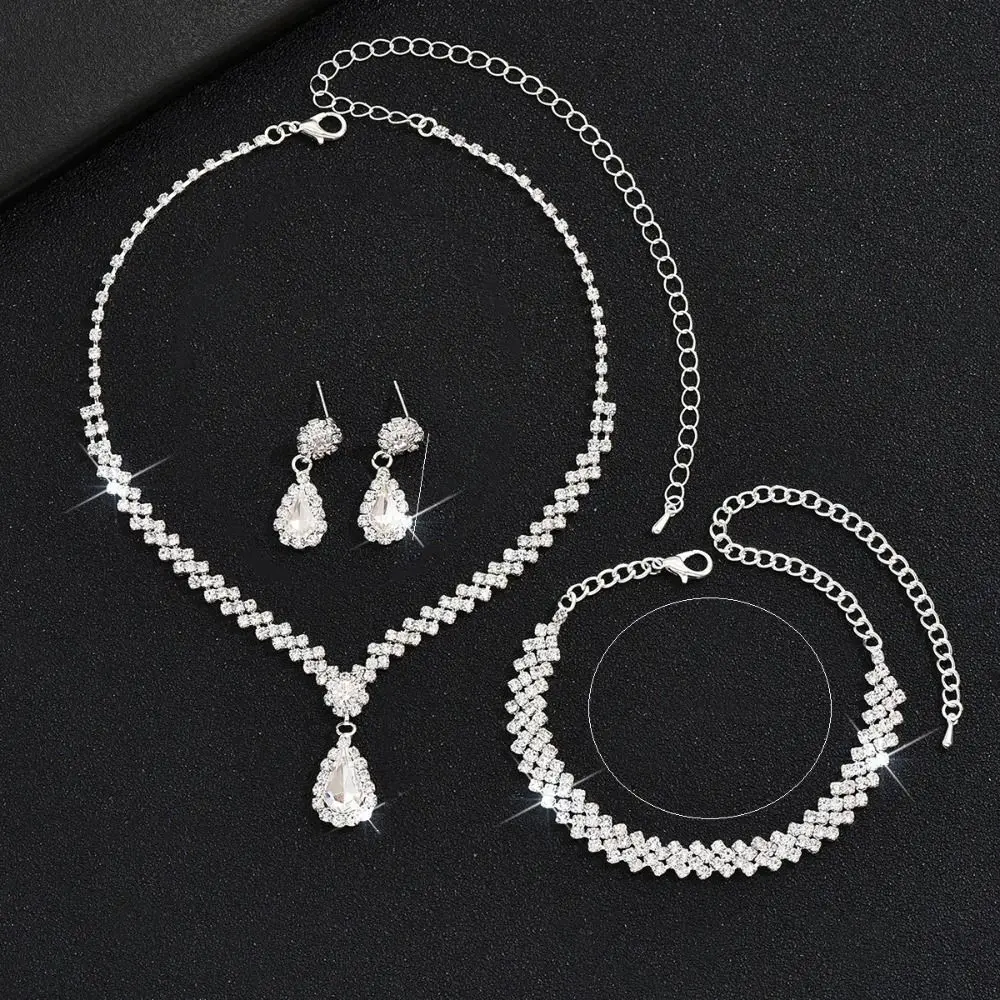 Water Drop Luxury Bridal Jewelry Set Elegant Exquisite Necklace Earring Set Temperament Zircon Rhinestone Bracelet Banquet